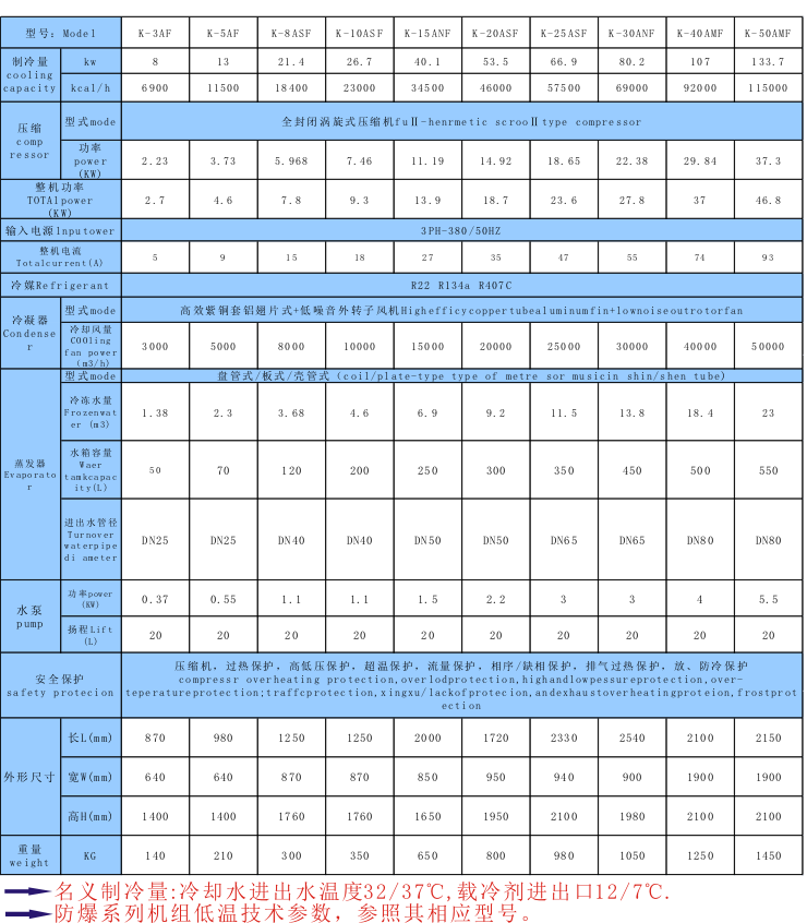 反應釜控溫用防爆制冷機配置說(shuō)明及保護裝置: