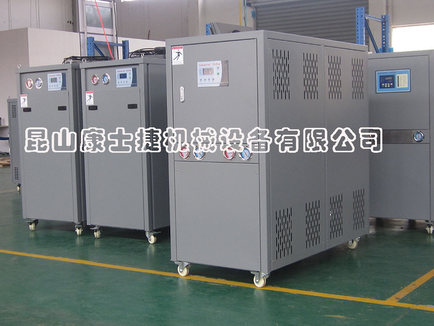 電鍍行業(yè)用電鍍冷水機: 種類(lèi)電鍍液冷卻,使金屬、非金屬分子穩定.冷水機使金屬分子隨著(zhù)穩定的電流快速貼附上鍍件表面,增加鍍件的密度和平滑,縮短電鍍周期,提高質(zhì)量,并可有效地回收各類(lèi)昂貴的化學(xué)物質(zhì),工業(yè)制冷設備同理也適用于真空鍍膜工業(yè) 。A.直接冷卻:即鍍液直接通過(guò)過(guò)濾機或是過(guò)濾網(wǎng)進(jìn)入冷凍機的蒸發(fā)器進(jìn)行降溫再回到氧化槽。此冷卻方式的優(yōu)缺點(diǎn):冷卻時(shí)間短、效果好;缺點(diǎn)就是蒸發(fā)器需要做防腐處理(一般采用鈦合金),蒸發(fā)器里容易結垢,需定期清洗,否則影響制冷效果和機器運行。B.間接冷卻:氧化槽里鋪置鈦管,冷凍水通過(guò)鈦管帶走渡液熱量達到降溫目的;若鋪鈦管不便可添一換熱器(需是鈦合金制成)一邊走冷凍水一邊走鍍液。