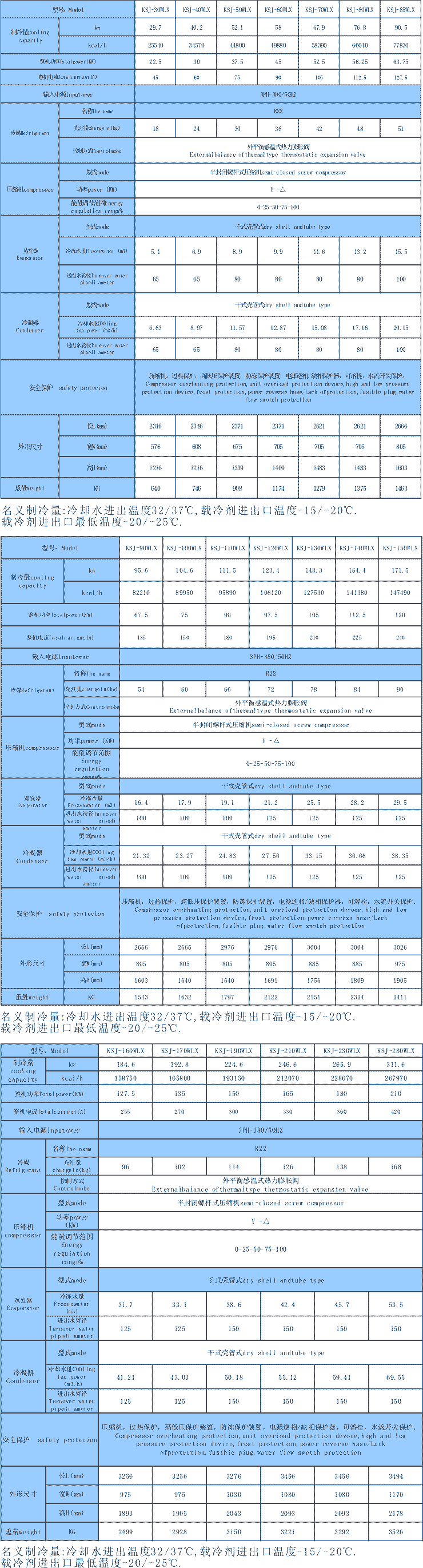螺桿式低溫冷水機組參數